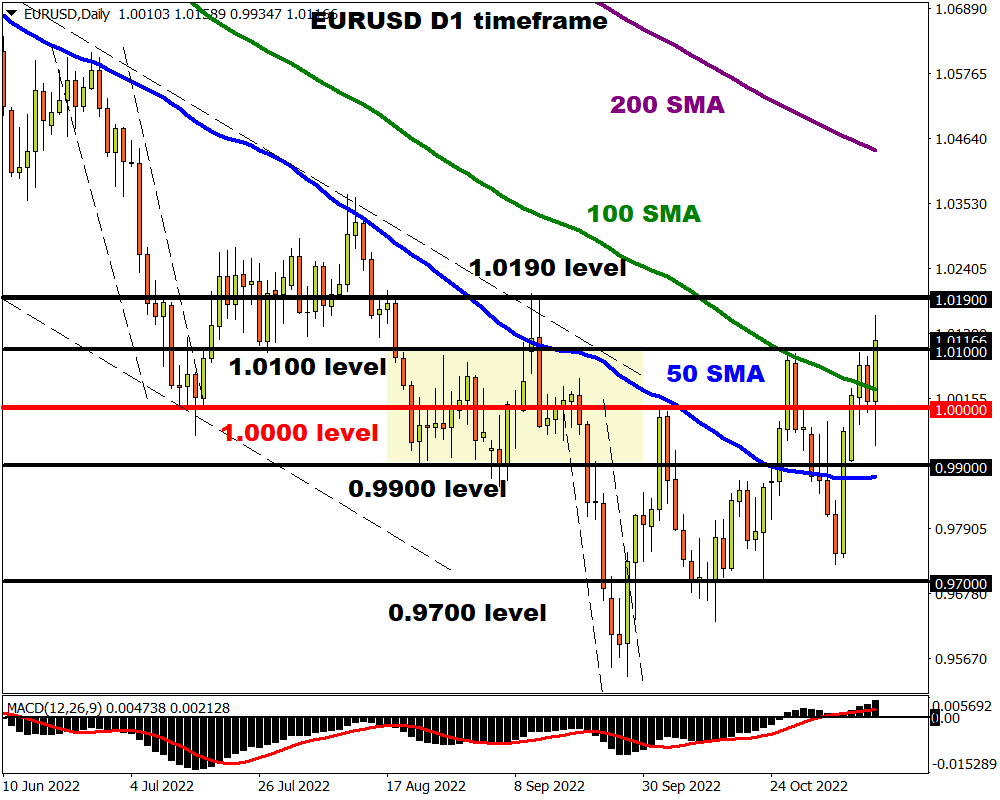 The EURUSD has punched above 1.0100 and could venture higher thanks to dollar weakness.