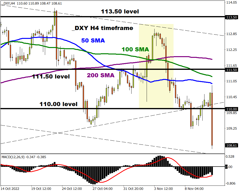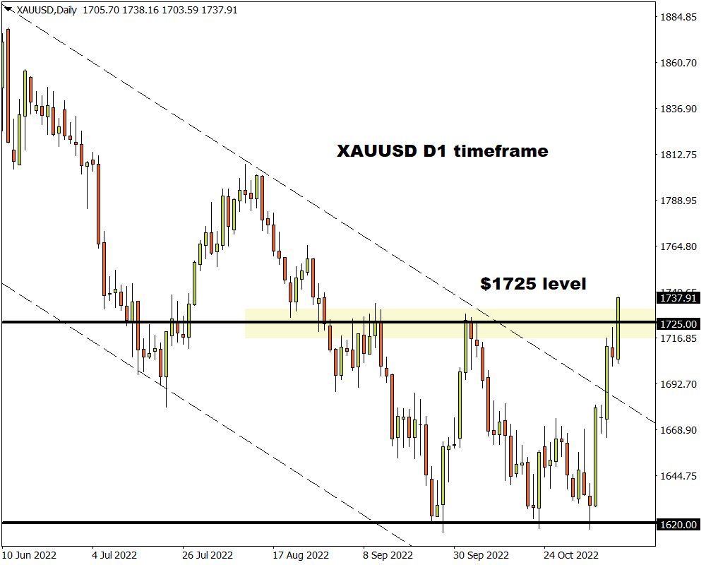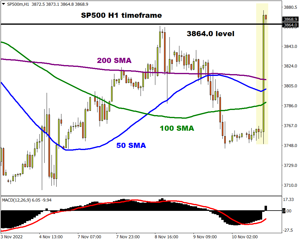 In a nutshell, US inflation is cooling faster than expected and this is reducing the pressure on the Fed to keep raising interest rates aggressively. According to Bloomberg, traders are now only pricing in a 50bps point rate hike in December. With the Fed adopting a less aggressive approach towards rates as inflation cools, this continues to ease fears over a rate hike-induced recession. As growth concerns ease, the market mood is set to improve – supporting equity markets but pressuring the dollar which remains a safe-haven destination.