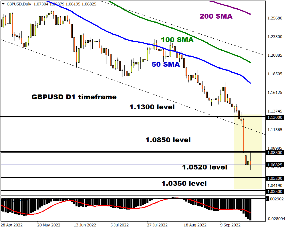 It’s been a rough week for the GBPUSD. After hitting an all-time low on Monday, we saw the currency stage a sharp rebound. Nevertheless, prices remain heavily bearish with a break back below 1.0600 suggesting a decline towards 1.0520 and 1.0350, respectively. Should prices rebound back towards 1.0850, the currency pair could test 1.1000 and 1.1350.