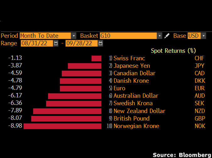 Major currencies have been crushed by the dollar’s meteoric rise this month with the British Pound and New Zealand dollar shedding over 8%. Given how the dollar continues to draw strength from aggressive rate hike bets, geopolitical tensions, and positive US economic data – more upside could be on the cards.