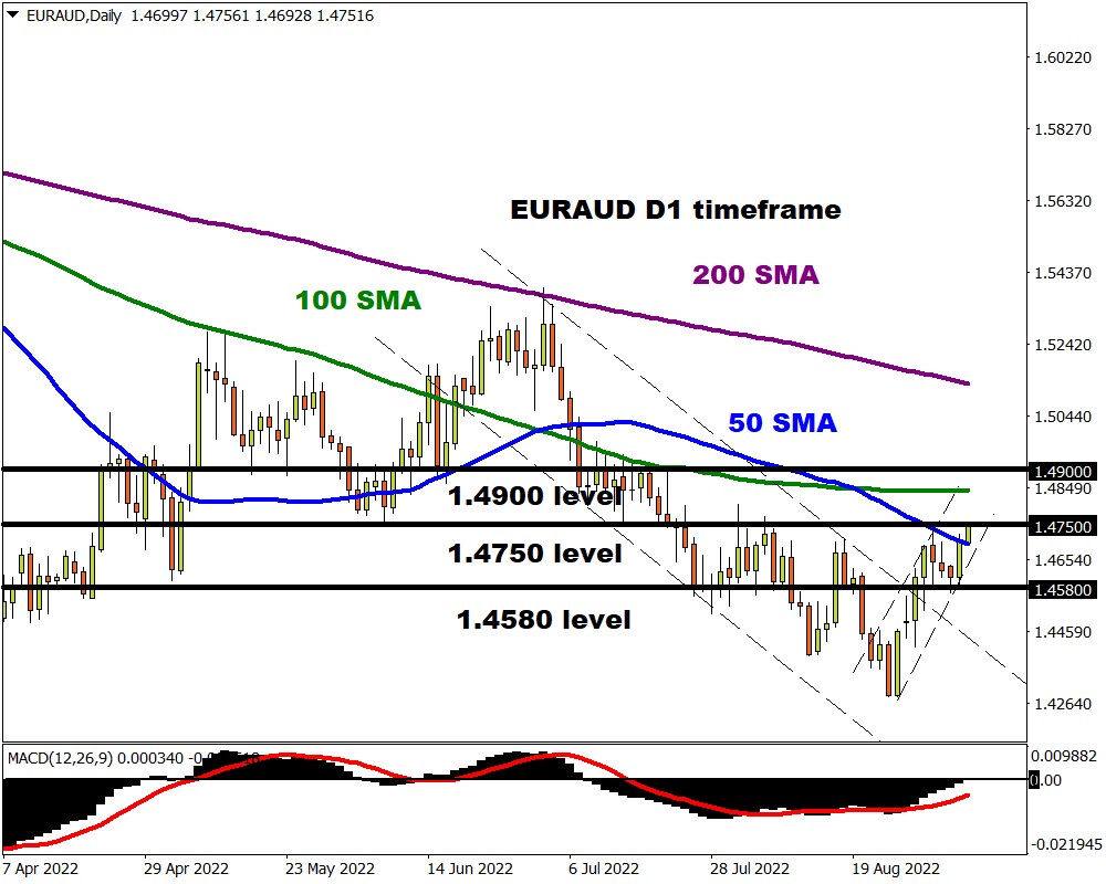Things are turning bullish for the EURAUD with 1.4750 acting as a barrier for bulls. Beyond this point, we have the 100 -day SMA and 1.4900 which are likely to become key points of interest down the road. Should the upside take prices beyond 1.4900, the EURAUD could venture towards the 200-day SMA. Alternatively, a move back towards 1.4580 could be on the cards if 1.4750 proves to be a tough nut to crack.