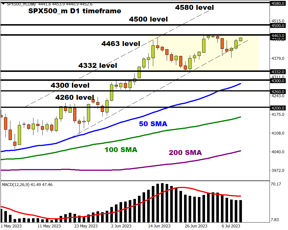 Prices remain bullish on the daily charts. A strong breakout above 4463 could inspire an incline towards 4500. Should bulls lack the strength to conquer 4463, prices may descend back within the range with 4332 acting as the next key level of interest.