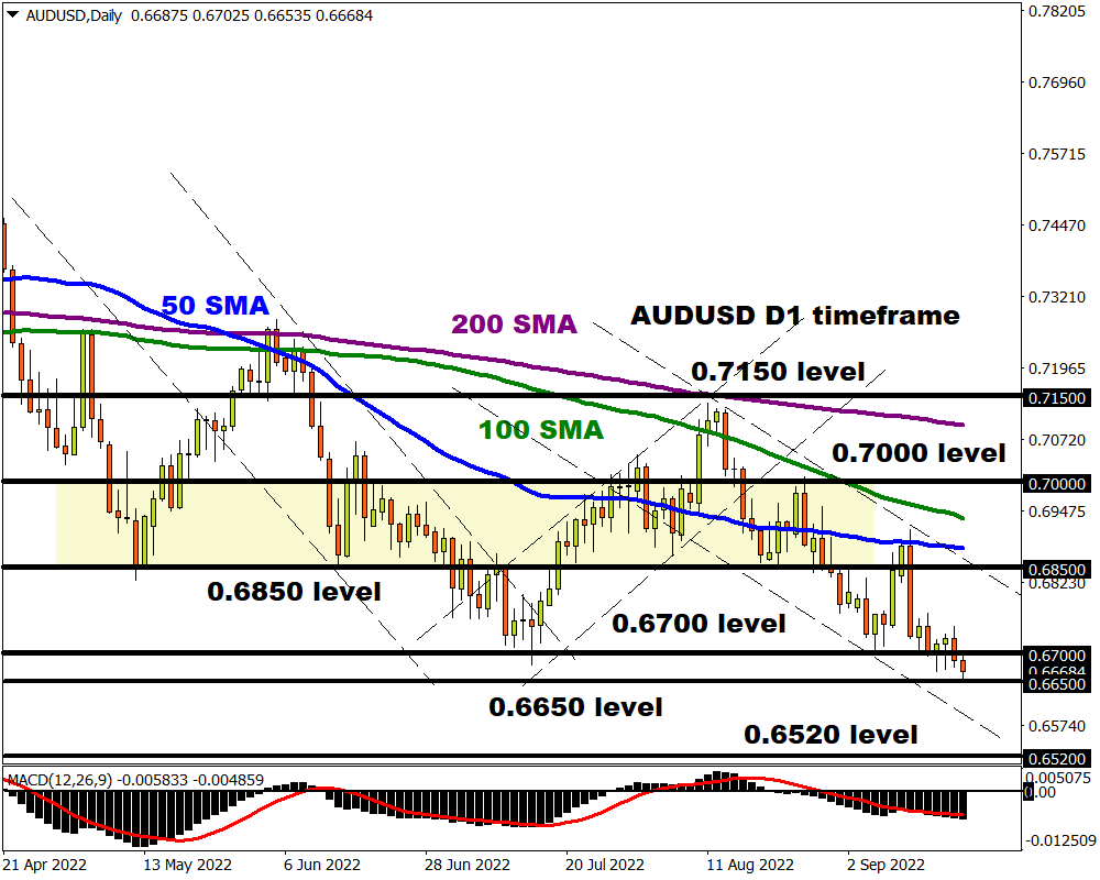 AUDUSD breaks below 0.6700
