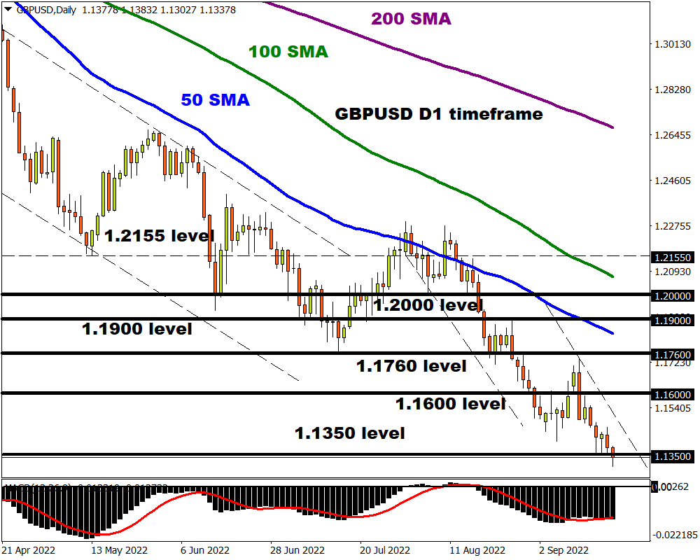 The BoE decision ON Thursday will heavily influence the GBPUSD near-term outlook. A hawkish central bank that moves ahead with a jumbo rate hike could throw pound bulls a lifeline. However, upside gains are likely to be capped by growth fears. Prices have the potential to sink lower if a daily close below 1.1350 is secured.