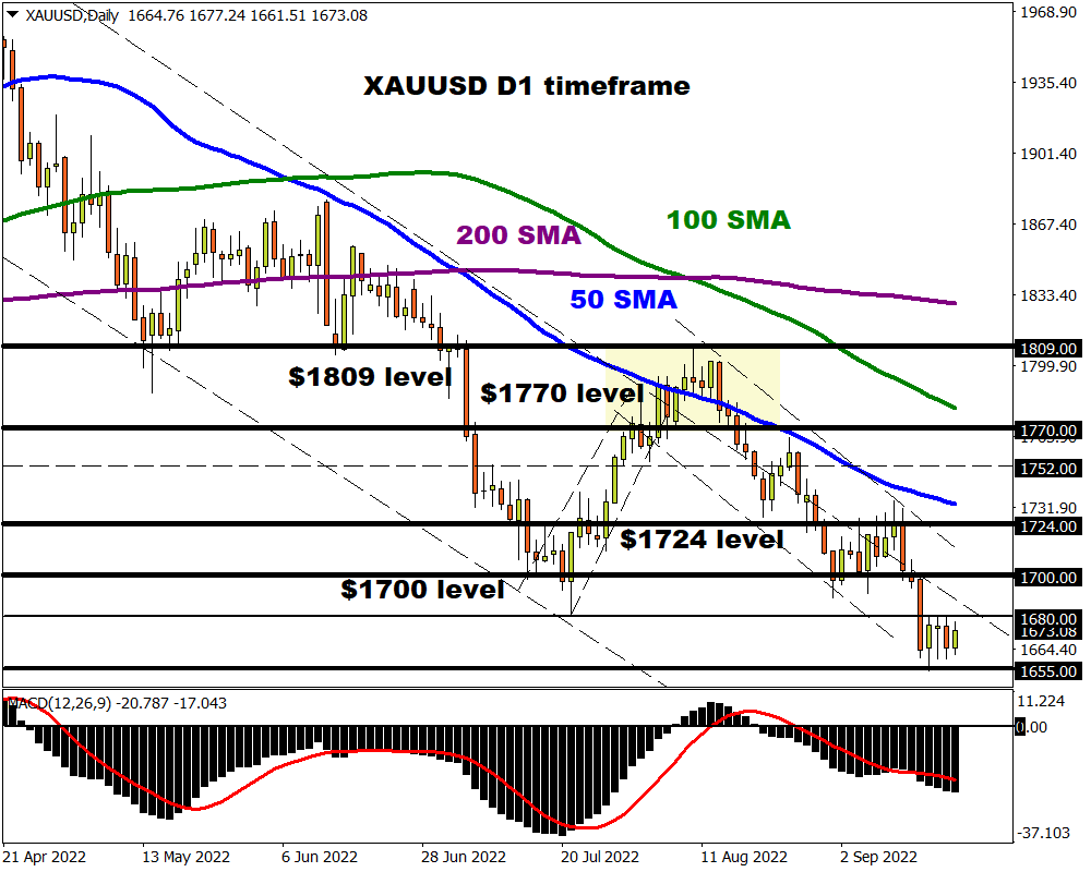 How gold performs this week will be heavily influenced by the Fed meeting on Wednesday evening. As highlighted earlier, the precious metal remains under pressure and could be in store for more punishment if the dollar and Treasury yields jump. A move below $1655 could swing open the floodgates, dragging prices towards $1600 and lower.