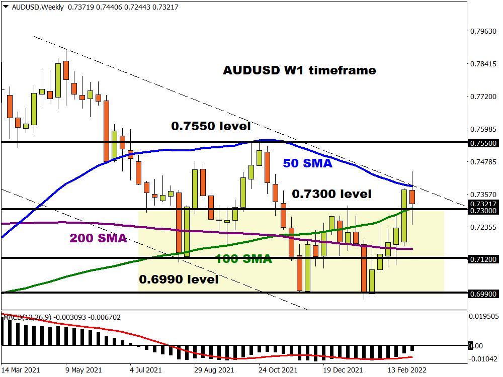 The AUDUSD experienced a rebound over the past few weeks with bulls pushing the currency beyond 0.7300. Interestingly, prices still remain in a bearish channel on the weekly charts with 0.7300 acting as a pivotal point. Sustained weakness under this level could trigger a selloff towards 0.7120 and 0.6990.