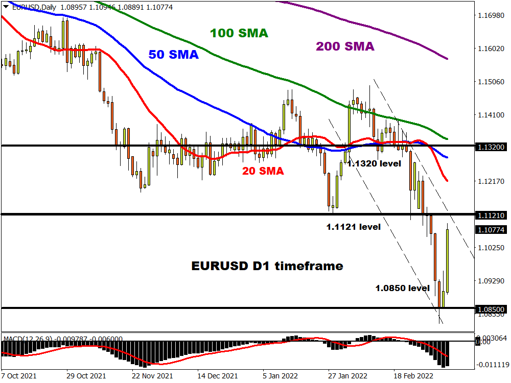 With the European Central Bank (ECB) widely expected to leave interests rates unchanged and the dollar drawing strength from the overall uncertainty, the EURUSD is poised to decline. Given how prices are approaching a key dynamic level, anything could be on the table. A strong breakout above 1.1121 may open the doors towards 1.1320. Alternatively, sustained weakness under 1.1121 could trigger a decline back towards 1.0850.