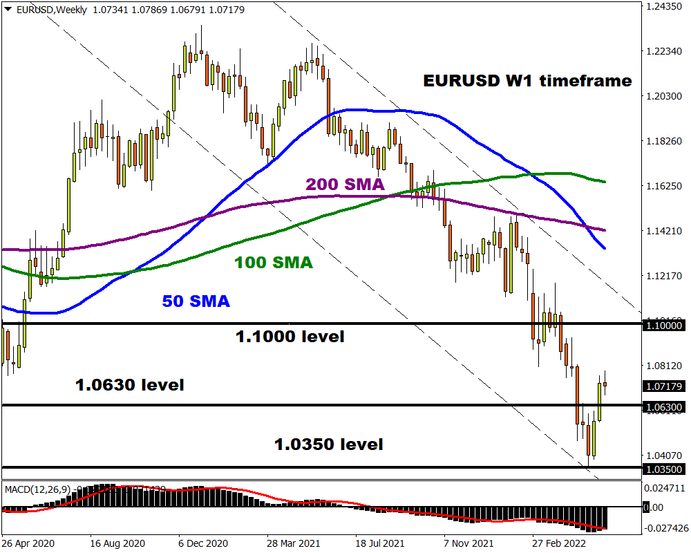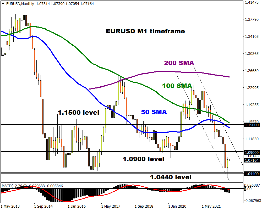 Zooming into the weekly charts, bears remain in control but bulls are lingering in the vicinity. Should 1.0630 prove to be reliable support, a move towards 1.1000 could be a possibility. If prices sink back under 1.0630, the EURUSD may test 1.0350.
