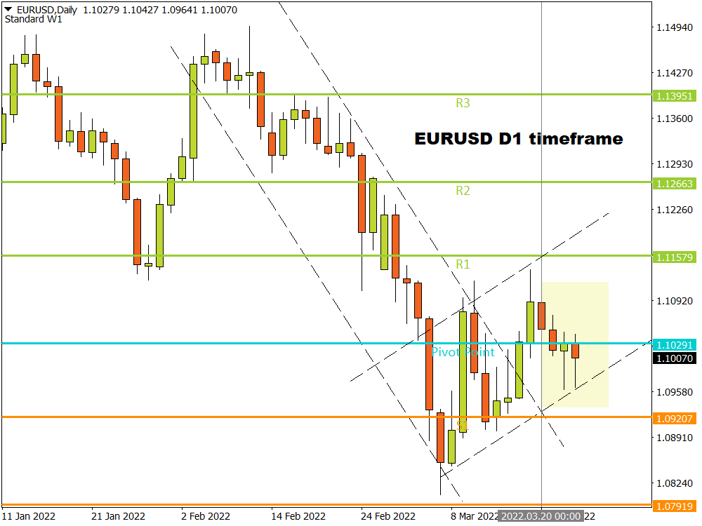 It is shaping up to be a choppy week for the EURUSD. Prices are trading below the weekly pivot level of 1.10291 but there has not been much movement. Sustained weakness below this level could encourage a decline towards 1.09207 which is the weekly S1. Should prices push above the weekly pivot point, the next key level of 1.11579 could be a possibility.