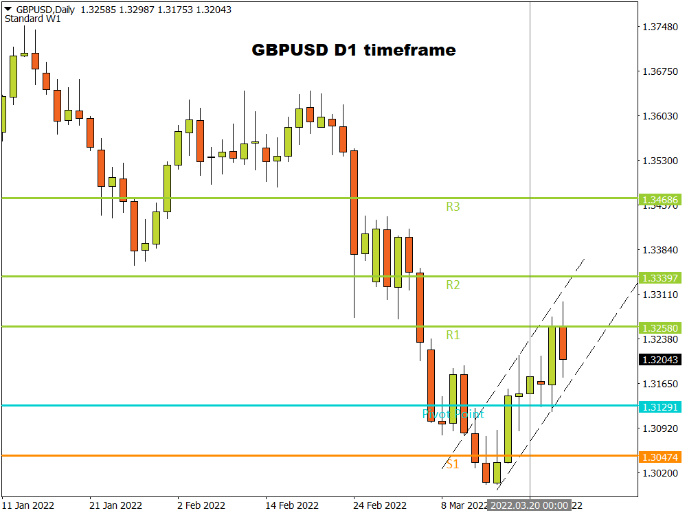 The GBPUSD has turned bullish on the daily charts. Prices are trading above the weekly pivot level and have already hit the weekly S1 level. A strong daily close above the weekly S1 could encourage an incline towards the weekly S2 based at 1.33397. Should 1.32580 prove to be a tough nut to crack, a decline back to 1.31291 could become reality.