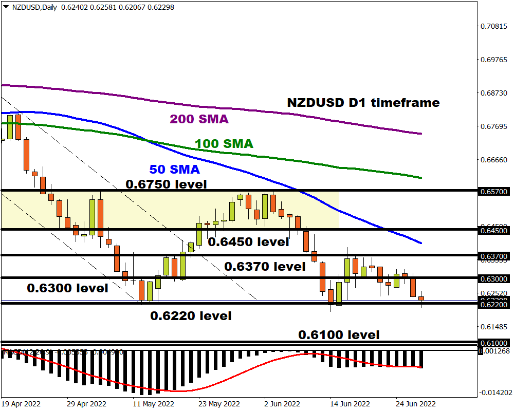 All eyes will be on how prices behave around the 0.6220 support level which has been held on a couple of occasions. A strong breakdown below this point could encourage a selloff towards 0.6100 and 0.6030. A move back above 0.6300 may suggest an incline back towards 0.6370 and 0.6450.