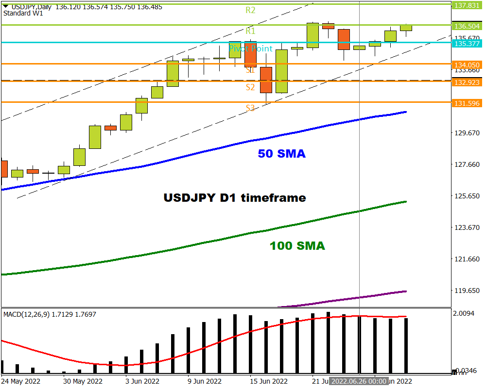 The USDJPY is on a path to hitting a new 24-year high beyond 136.70.