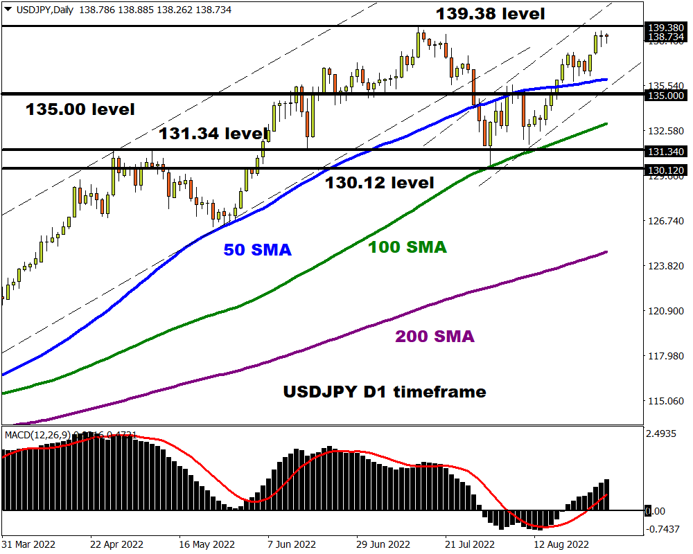 The USDJPY remains bullish on the daily charts as there have been consistently higher highs and higher lows. Prices are trading above the 50, 100, and 200-day Simple Moving Average while the MACD trades above zero. A strong breakout above 139.380 could inspire an incline towards 140.00. A move back below 135.00 may trigger a selloff towards the 100-day Simple Moving Average and 131.34, respectively.
