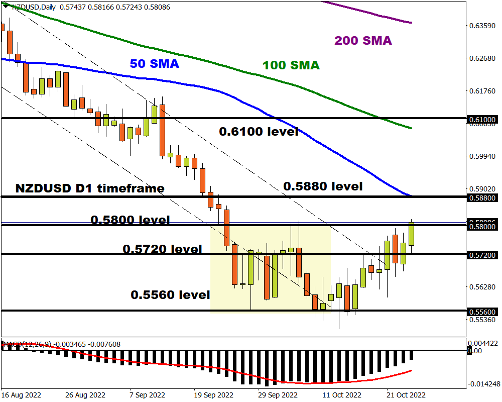 It looks like the NZDUSD could be gearing for a major breakout above 0.5800. Such a move could open a path toward the 50 day SMA at 0.5880 and 0.5900. A scenario where 0.5800 holds the forte may send prices back towards 0.5720 and 0.5560.