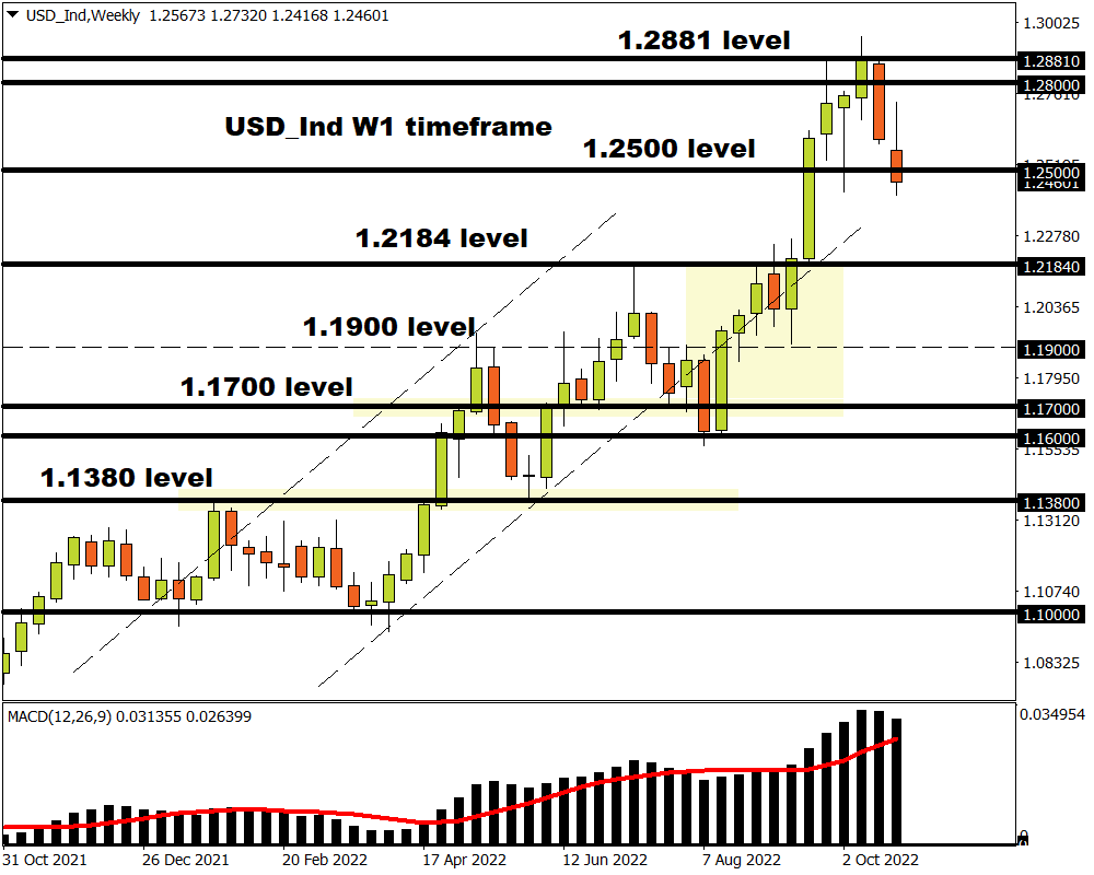 We can see a similar theme in the equally-weighted USD index. Prices are under pressure on the weekly charts. Sustained weakness below 1.2500 could open the doors towards 1.2184.