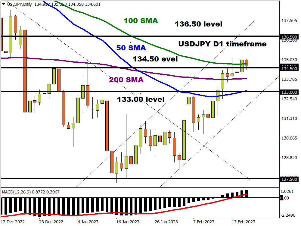 USDJPY bulls may be back in action after pushing back above the 200-day SMA. There have been consistently higher highs and higher lows while prices are trading above the MACD. A solid close above the 100-day SMA could trigger a move higher toward 136.50. Should prices sink back under 134.50, the currency pair could test the 200-day SMA before sinking back towards 133.00.