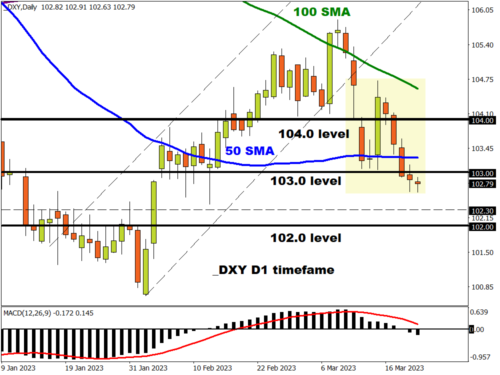 Taking a look at the technical picture, the Dollar Index (DXY) remains under pressure. The recent closer below 103.00 could signal further downside with 102.30 and 102.00 key levels of interest. If prices can push back above 103.00, then bulls may target 104.00.