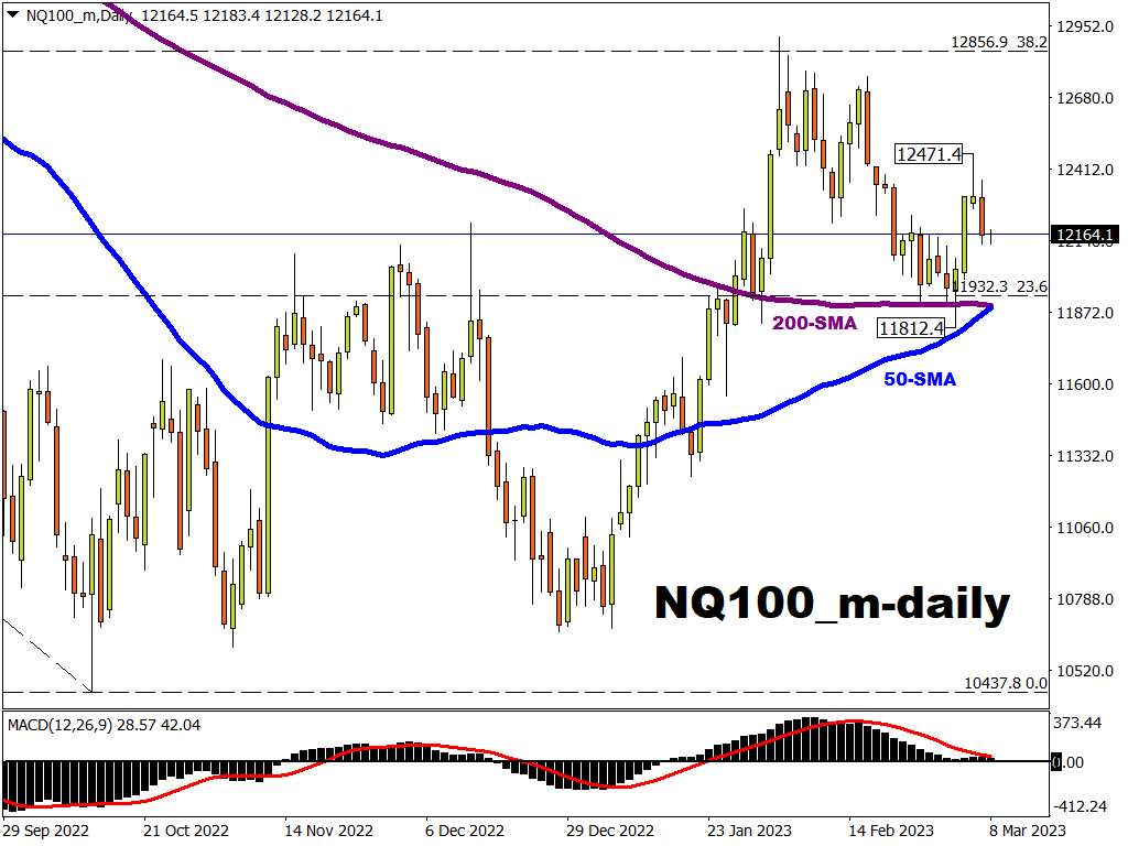 Until then, the fear of even-higher US interest rates is likely to limit gains for the NQ100m.
