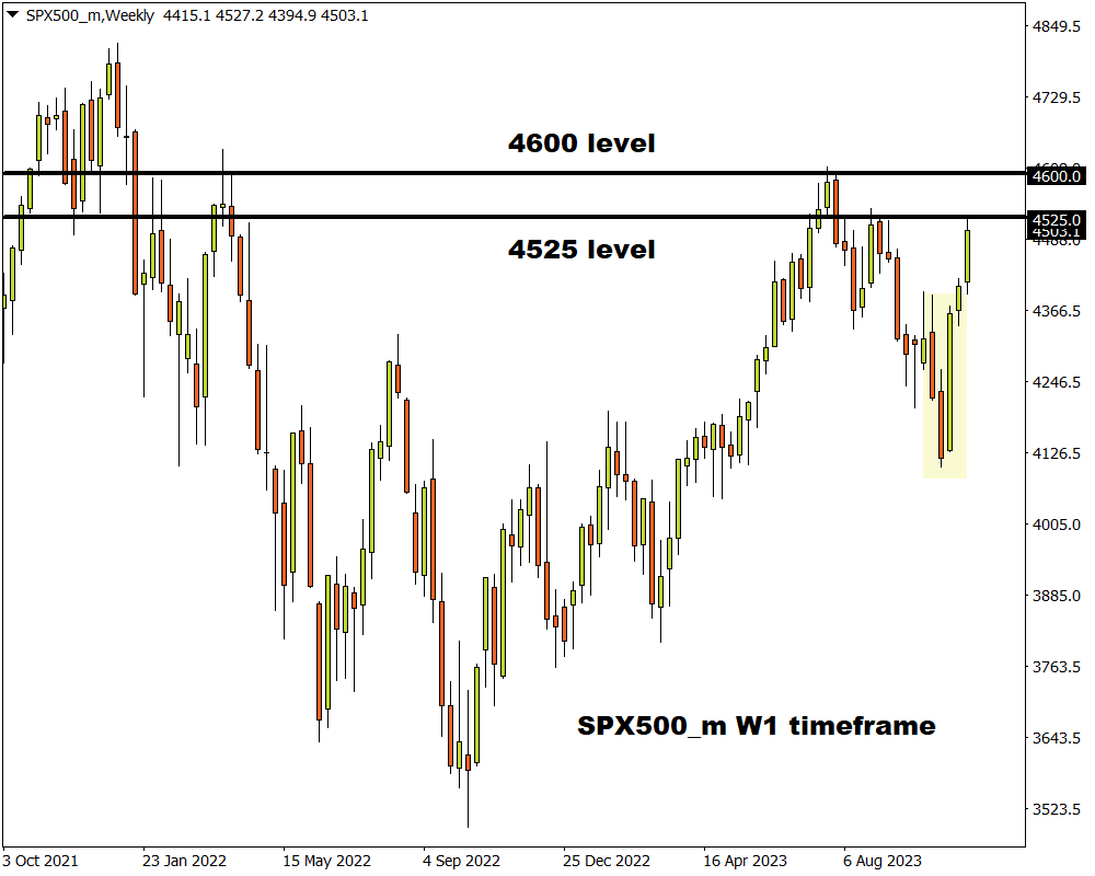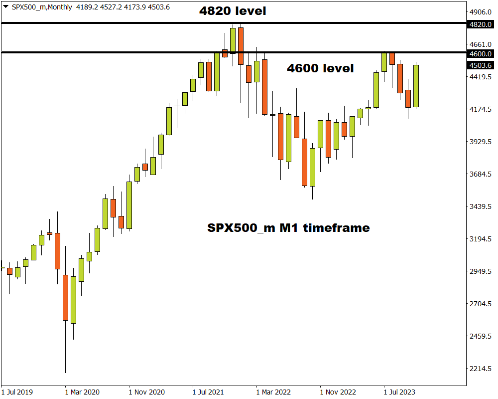 Zooming out to the monthly, bulls seem to be regaining momentum with a solid monthly close back above 4600 opening the doors to the all-time high created at the start of 2022.