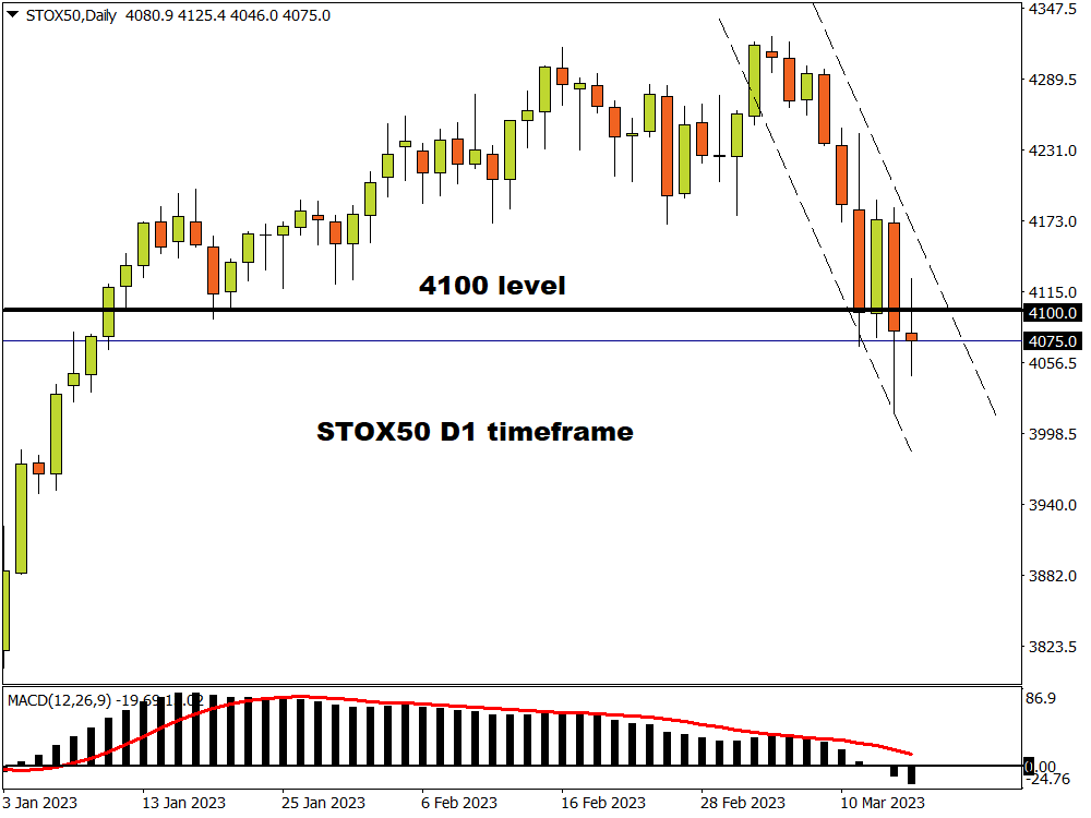 The STOX50 index on the D1 time frame was in a strong uptrend that made a last higher top at 4325.0 on 6 March. The bears then saw an opportunity and started coming into the market in more numbers.