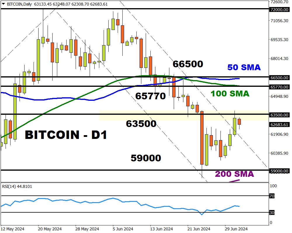 We suggested how “sustained weakness below $63500 may encourage a decline back towards $59000.”