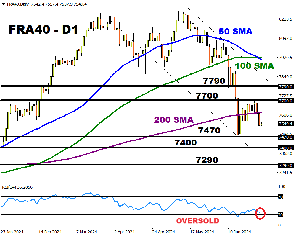 Note: More volatility could be on the horizon for the FRA40 due to the second round of French elections on Sunday 7th July.