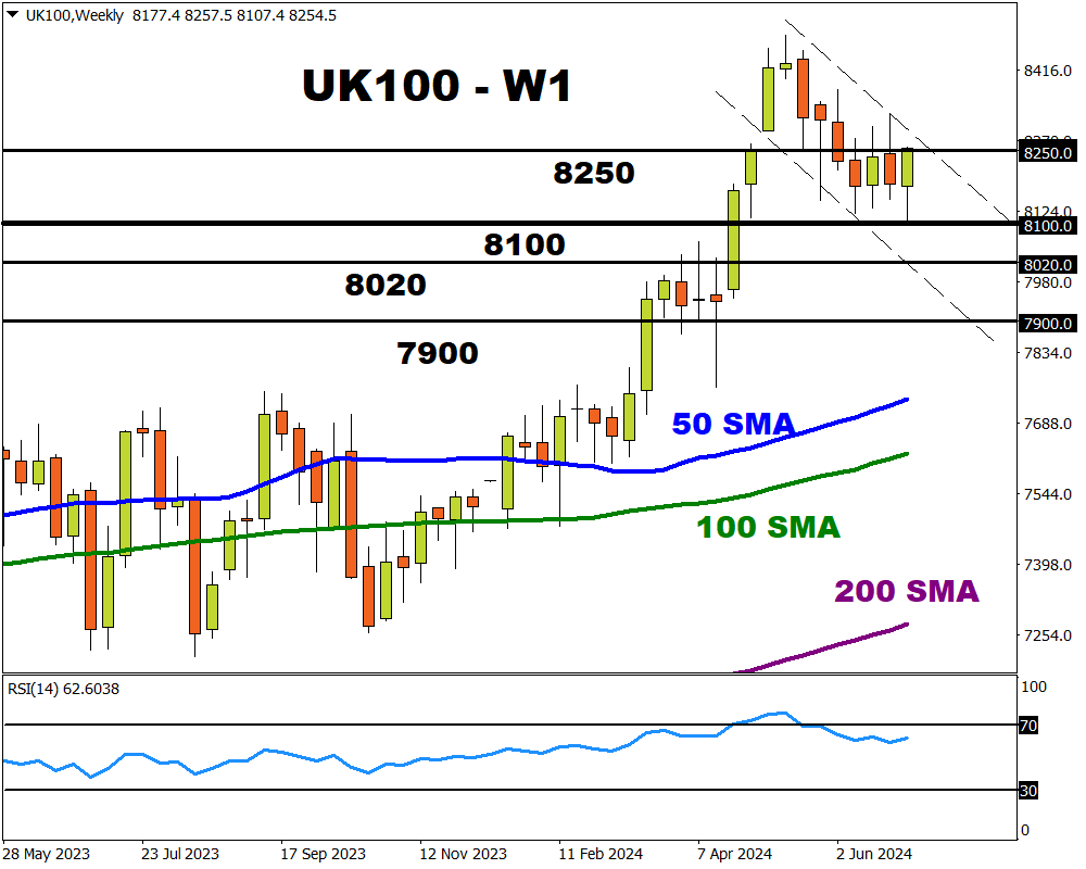 - UK100 hits bullish target before UK election results