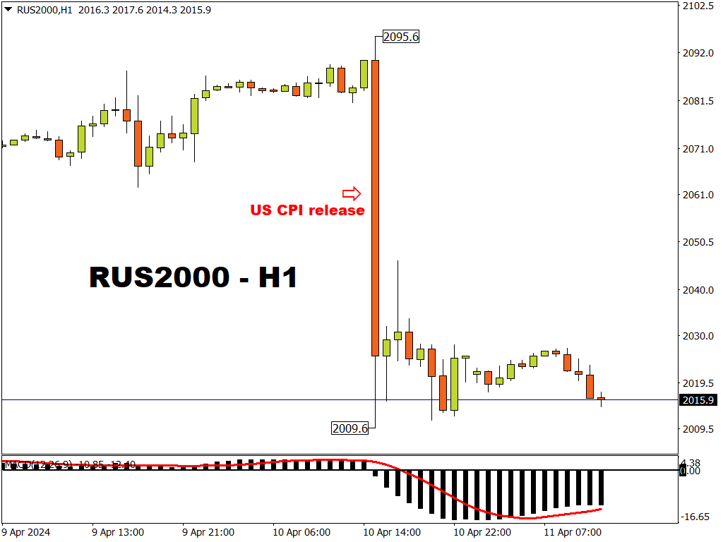 2) US400 and RUS2000 indices saw massive post-CPI moves