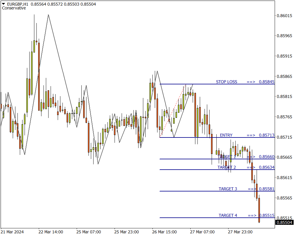 The EURGBP tumbled through all bearish profit targets on the H1 timeframe.