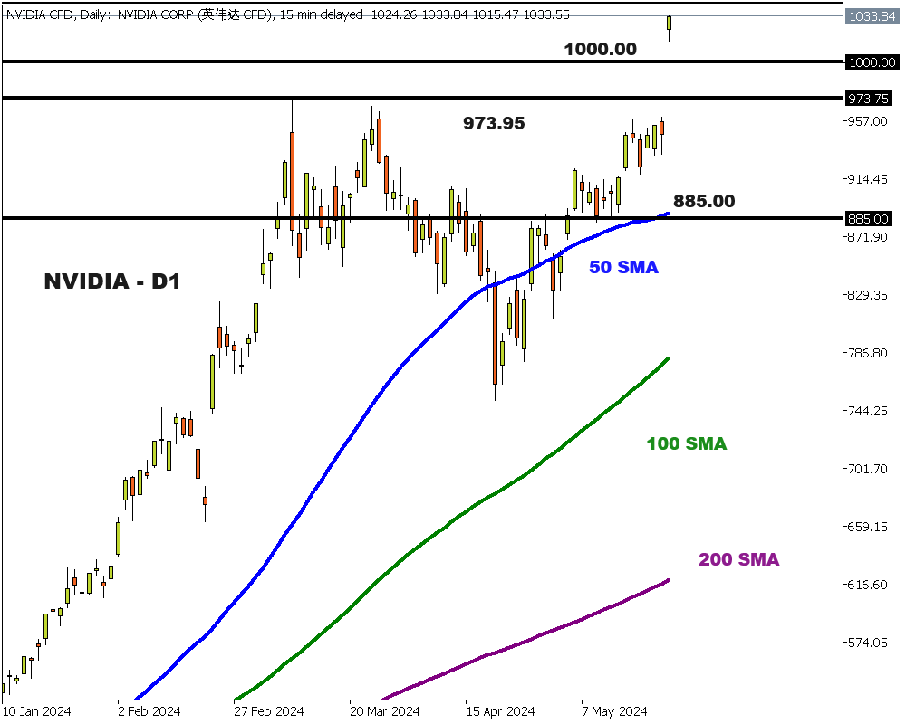 50,000 points for traders who bought Nvidia shares on Monday around $950 and exited at $1000.