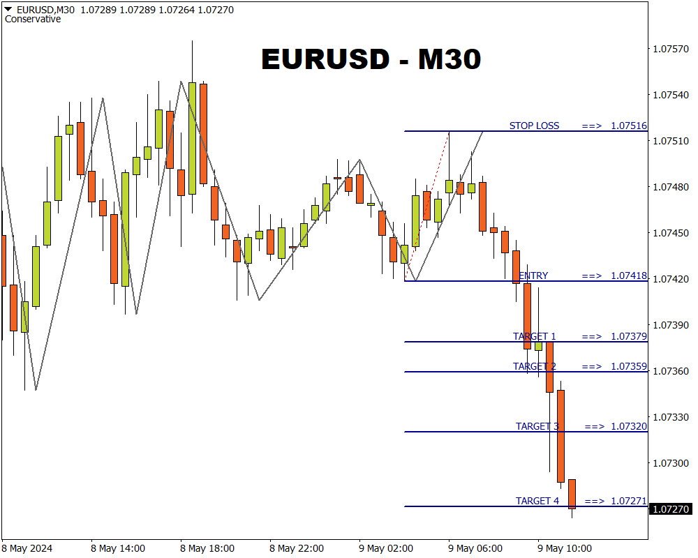 Traders who entered at 1.07418 and exited at the final target level of 1.07271 would have gained roughly 15 pips.