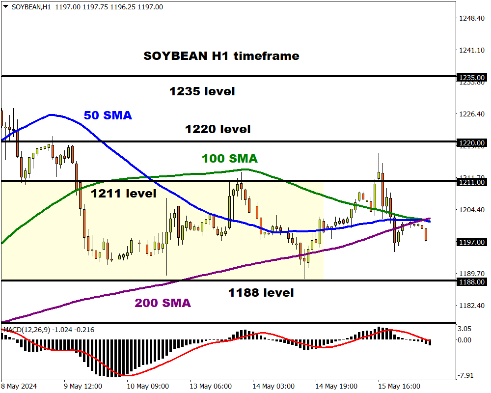 After bouncing from the 1188 level and breaking above the 50 SMA, prices hit the 1211 target price on Wednesday.