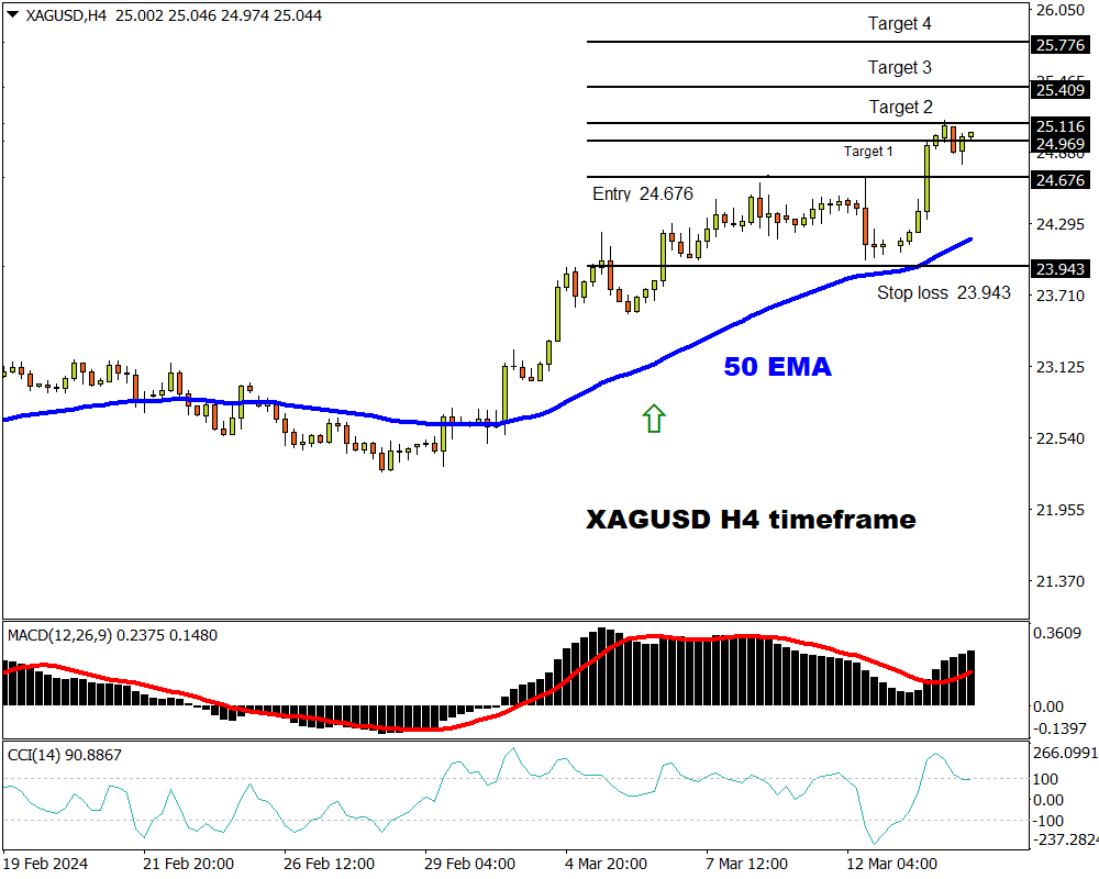 440 points for traders who bought silver at $24.676 and locked in profits at the second bullish price target at $25.116.