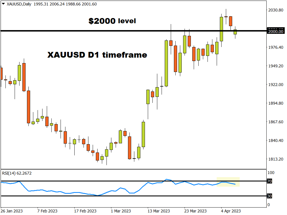 Taking a quick peek at the technical picture, gold remains bullish with the weekly close above the $2000 level signaling further upside. However, anything could be on the table given how prices are flirting close to the 70 level on its 14-week RS1.