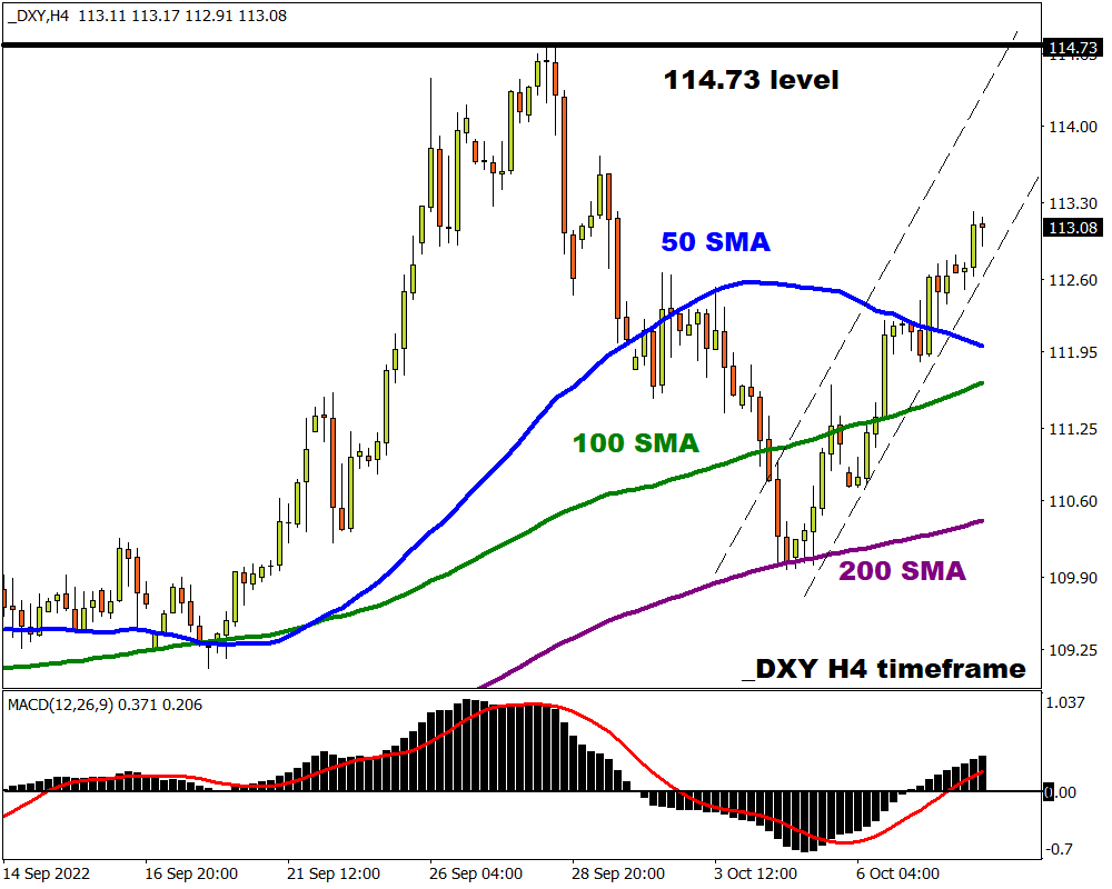 Thursday sees the release of the US inflation report with investors watching to see if prices are rising again or perhaps if we are finally peaking. According to Bloomberg, the headline print for September is expected to drop 8.1% from 8.3% while the core is expected to jump 6.5% from the shock of 6.3% in August. A higher-than-expected CPI figure may reinforce expectations around the Fed unleashing more monetary bazookas to tame the inflation beast. This could see gold prices tumble lower as the dollar and Treasury yields rise. Alternatively, a lower-than-expected inflation report could reduce rate hike bets and feed the “dovish pivot” narrative – ultimately providing room for gold bulls to fight back.