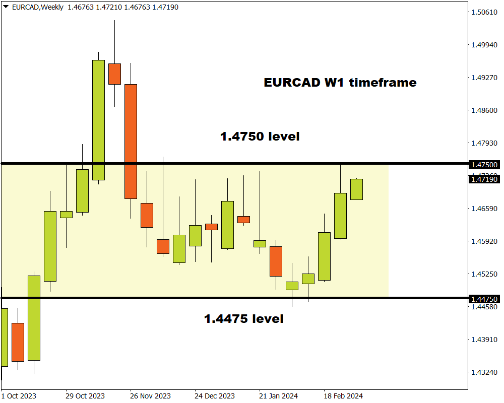 The minor currency pair has been trapped within a wide range since December 2023, with support at 1.4475 and resistance at 1.4750.