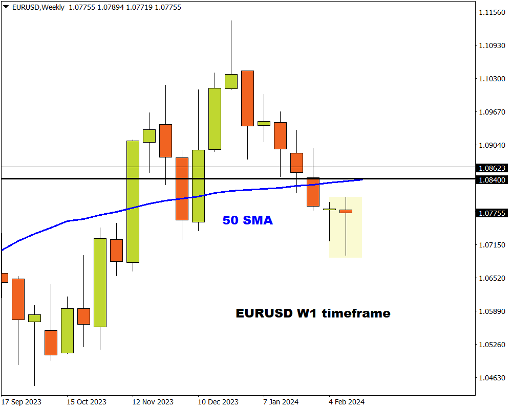 - If the dollar strengthens as data and Fed officials further dampen hopes of early cuts, the EURUSD has the potential to tumble.