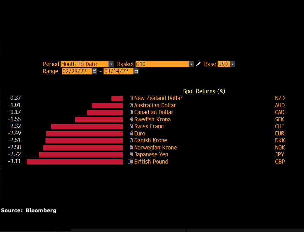 Before we discuss what to expect from the Fed and BoE, it is worth keeping in mind that the dollar has appreciated against every single G10 currency this month.