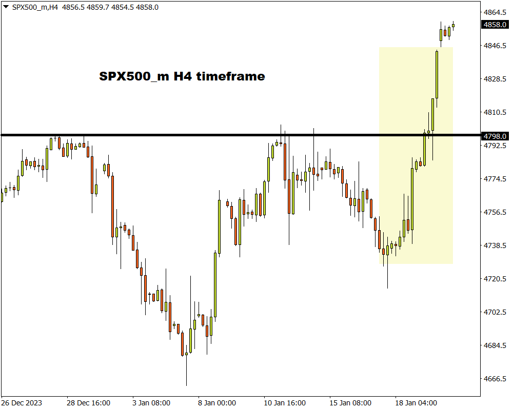 The index has not only topped the previous record set in January 2022 but also confirmed that it has been in a bull market since the October 2022 low. When considering the shaky start to the new year, it looks like SPX500_m bulls have regained their mojo.