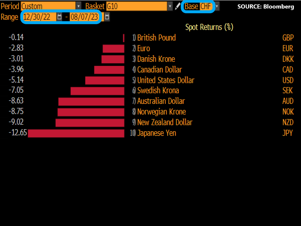 1) CHF is the best-performing G10 currency so far in 2023