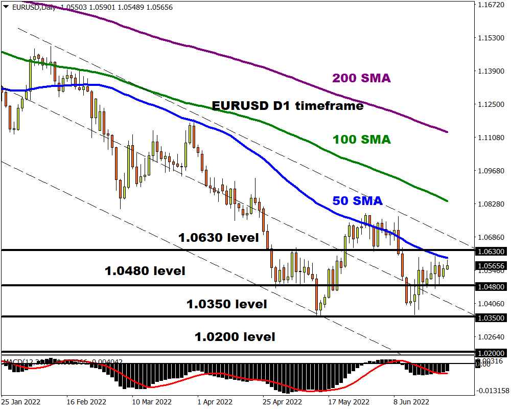 - Prices remain trapped within the 1.0480 support and 1.0630 resistance level with a possibility of sinking back towards 1.0350.