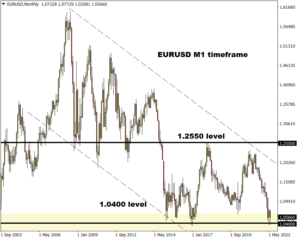 Taking a quick look at the technical picture, the EURUSD is balancing above significant support at 1.0400 on the monthly timeframe. The last time prices secured a monthly close below this level was in December 2002.