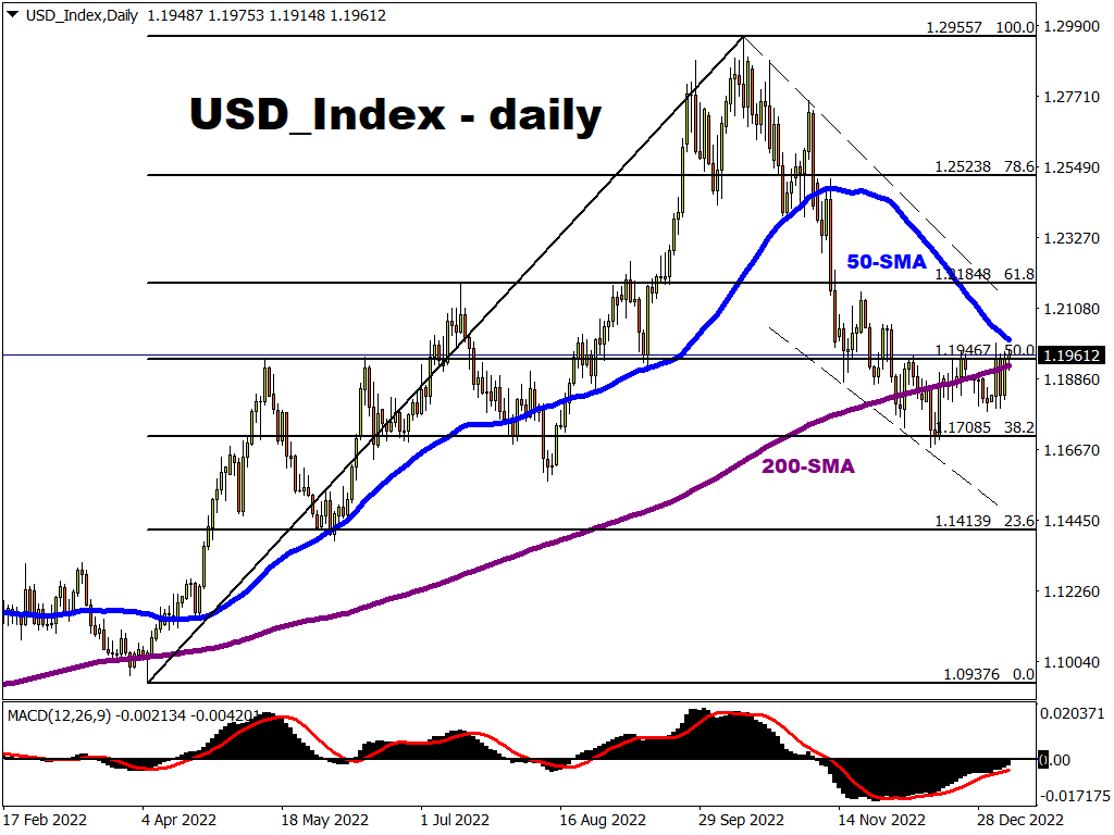 So far in this first trading week of the year, the equally-weighted USD Index has held up pretty well, even testing the key 200-day SMA / 50% Fibonacci resistance levels that we pointed out in our previous Week Ahead article (published Dec 30th):