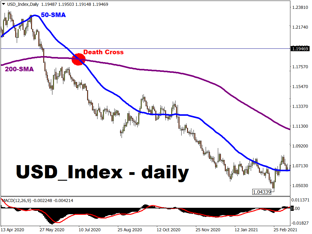 What could push the USD Index closer to a death cross?