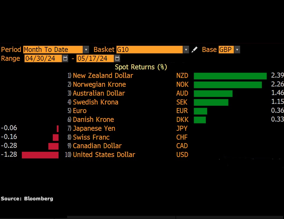 Interestingly, Sterling is down against most G10 currencies month-to-date.