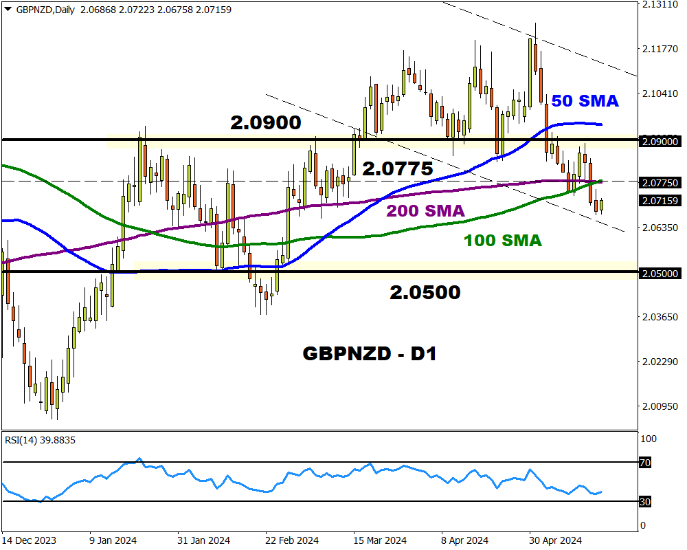 - If the central bank signals lower rates down the road, this could push the GBPNZD higher.