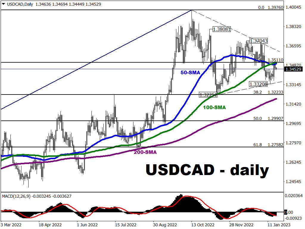 - 1.35 area – where this pair’s 50-day and 100-day simple moving averages are currently converging alongside the 23.6% Fibonacci level from USDCAD’s runup between June 2021 – October 2022.