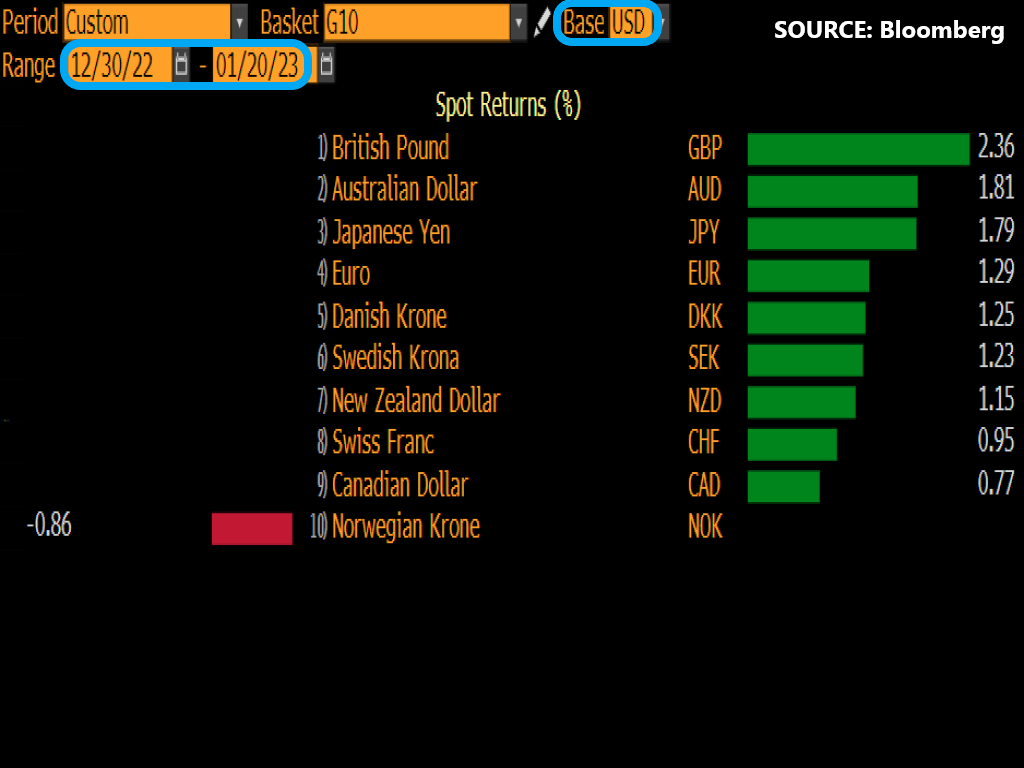 Only the Norwegian Krone, another oil-linked currency, has had it worse so far in 2023, with a 0.86% percent year-to-date decline versus the greenback at the time of writing.