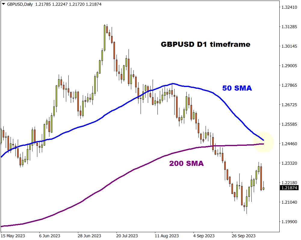 Our focus falls on the GBPUSD which is forming a “death cross” pattern on the daily timeframe.
