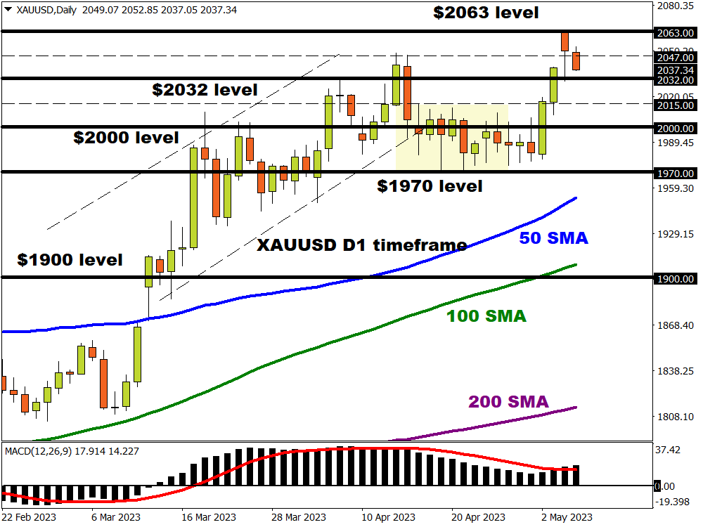 - A soft inflation report could sweeten appetite for the zero-yielding asset as bets rise over the Fed cutting rates in 2023. This development could push the metal back towards the 2023 high of $2063 with bulls eyeing $2070 and the all-time high at $2075.